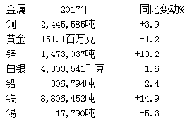 以下為秘魯能源和礦業(yè)部公布的該國(guó)2017年全年礦物產(chǎn)出數(shù)據(jù):