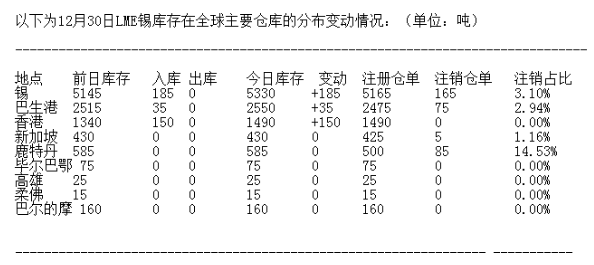 6. 錫庫存5330噸,增加185噸。