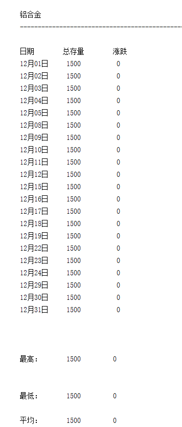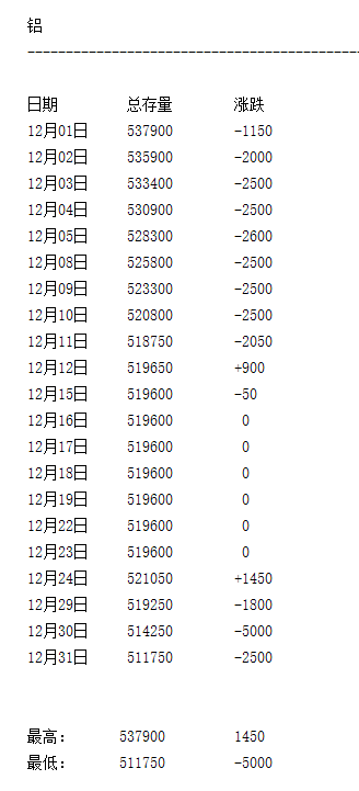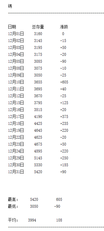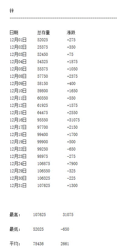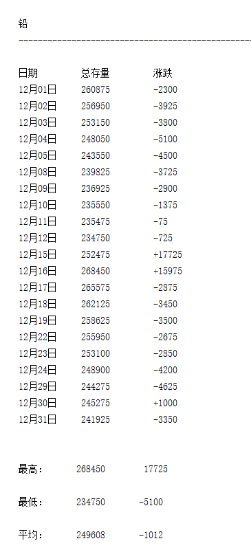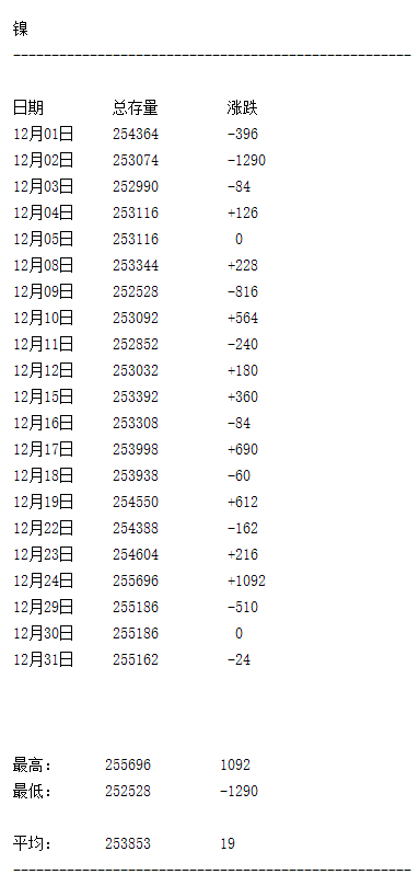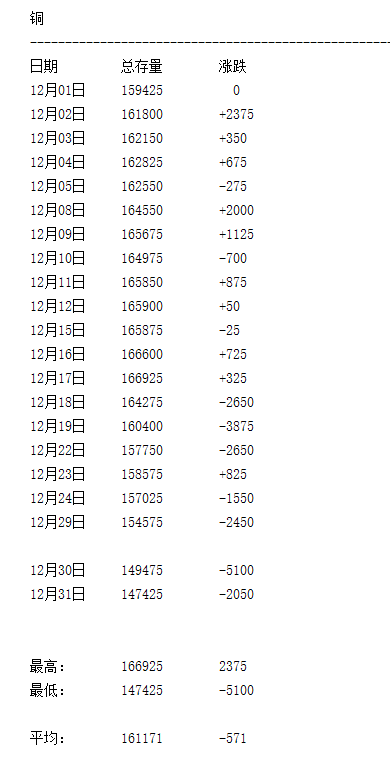 LME 2025年12月有色金屬庫存月度統(tǒng)計(jì)一覽表