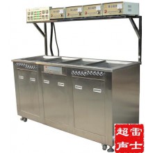 電解式陰極陽極雷士超聲波清洗機(jī),該設(shè)備組成:超聲波清洗槽、鼓泡漂洗槽、防銹槽組成一體式三槽設(shè)備。超聲波發(fā)生器將工頻電能轉(zhuǎn)變成28KHz的高頻電信號,通過高頻電纜輸送到超聲波換能器上,換能器被加上高頻電壓后,產(chǎn)生強(qiáng)有力的超聲振動(dòng),在液體中迅速傳播,作用于超聲波清洗槽內(nèi)液體介質(zhì)中,產(chǎn)生每秒2.8萬次的振動(dòng),從而將工件器件附著的污垢震落,并同時(shí)通過正負(fù)極電解方式,達(dá)到清洗目的。設(shè)備具有時(shí)間設(shè)定、加熱控制、超聲清洗、電解、循環(huán)過濾、緊急停止等功能。