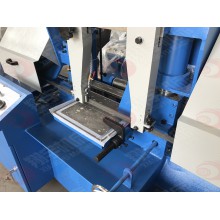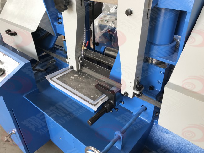 根據(jù)切割角度要求分為角度鋸床(能鋸切角度90度45度)無角度即90度垂直切割。1、鋸切角度調(diào)整:如要鋸切45度角內(nèi)任一角度時(shí),先放松固定把手,然后將鋸弓順時(shí)針方向推轉(zhuǎn),對準(zhǔn)本座上之角度標(biāo)尺上您所需要的角度刻度上,在鎖緊固定把手。2、當(dāng)您調(diào)整好鋸切角度時(shí),小虎鉗角度亦需跟著調(diào)整放松虎鉗固定螺絲,再將小虎鉗推向大虎鉗,使小虎鉗與大虎鉗角度相同,在鎖緊固定螺絲后即可。