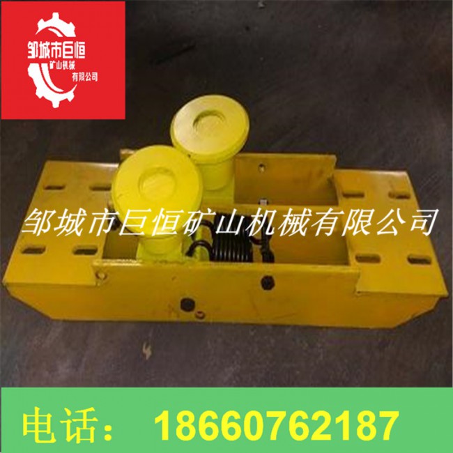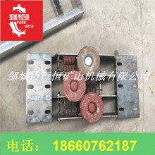 壓繩輪組用壓板固定在軌道的下沿上。一般在下列地點(diǎn)考慮安裝壓繩輪: ①在水平彎道的前后,當(dāng)彎道處的位臵較低時。②在巷道的下凹變坡點(diǎn),當(dāng)變坡角較大時,主壓繩輪組應(yīng)保證安裝數(shù)量,否則易發(fā)生跳繩現(xiàn)象。③當(dāng)鋼絲繩偏離軌道中心較多時。平托輪組用壓板固定在鋼軌的下沿上。在平道或坡道上每隔一定的間距安裝托繩輪組,在軌道的上凸處即坡頂前后間距要縮小。
