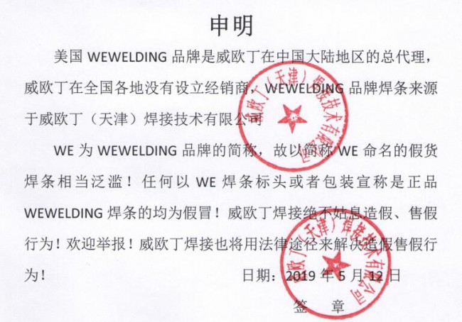 注意:威歐丁是美國WEWELDING品牌的總代理,威歐丁在各地沒有設(shè)立經(jīng)銷商,WEWELDING100(簡稱威歐丁100)開坡口焊條來源于威歐?。ㄌ旖颍┖附蛹夹g(shù)有限公司!