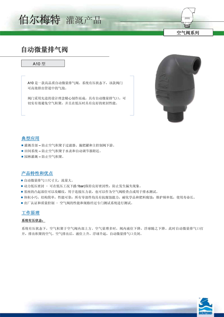 伯爾梅特A10自動微量排氣閥的產(chǎn)品特點: