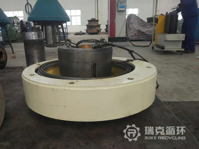 7.檢查動(dòng)定錐錐面如需要進(jìn)行補(bǔ)焊加工并上車床加工精度