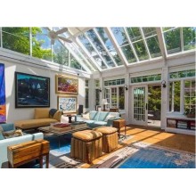 簡約風(fēng)白色陽光房用全鋁的陽光房系統(tǒng),骨架用幕墻斷橋鋁材料,頂用夾膠中空玻璃,四面用斷橋鋁門窗,良好的隔音設(shè)計(jì)和中空玻璃,有效阻止室內(nèi)外熱量交替。內(nèi)置PVB膠片鋼化夾膠玻璃,即使破碎,也不會對人體造成傷害,同時(shí)可吸收99.6\%紫外線。具有隔音、隔熱、通風(fēng)、遮陽、防塵、防水等功能。