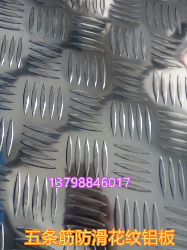 1、五條筋鋁合金花紋板材:五條筋防滑鋁板又成為柳葉形花紋板,鋁合金花紋板。具有良好的防滑能力,而被廣泛應(yīng)用在建筑(地板)平臺設(shè)計等方面。由于鋁板表面的花紋是按照五條凹凸花紋按照相對平行排列,而每款花紋與其它花紋之間呈現(xiàn)60-80度夾角,所以這款花紋具有優(yōu)秀的防滑性能。國內(nèi)通常采用此種鋁板作為防滑而用,具有良好的防滑效果,價格加便宜。