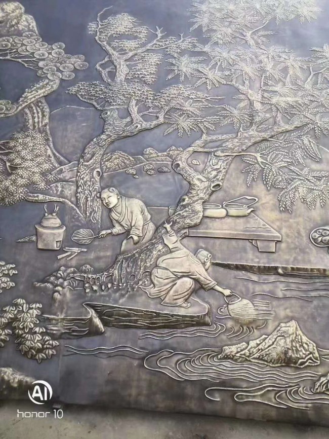 純銅純鋁雕刻屏風(fēng)背景墻,銅浮雕壁畫以其特有的金屬性質(zhì),解決了木制品的缺點(diǎn),能夠經(jīng)受戶外的風(fēng)吹雨淋而不變質(zhì),能夠有效的防火防潮防蟲蛀,好的耐候性,10年不變色。純銅雕刻屏風(fēng)背景墻,銅鋁浮雕壁畫經(jīng)過(guò)精雕細(xì)琢,既呈現(xiàn)出現(xiàn)代氣息,又不失古典韻味,融中西文化于一體,呈現(xiàn)出古典與現(xiàn)代的美感。