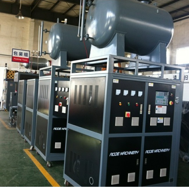 油溫機的優(yōu)點是控溫范圍大,熱確定性好,但需發(fā)媒介成本,有油污,熱傳導效率不如水溫機,我們新研制的機型,采用進口的板式熱交換器,具有結構緊湊,升降溫速度快,控溫精確的優(yōu)點。我司油溫機溫控可達350℃