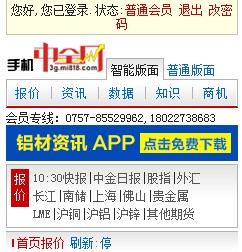 1、打開(kāi)手機(jī)中金網(wǎng)首頁(yè) 3g.mi818.com 或 3g.metalsinfo.com