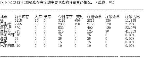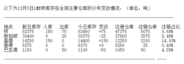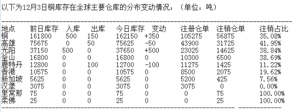LME 12月3日有色金屬庫(kù)存分布情況