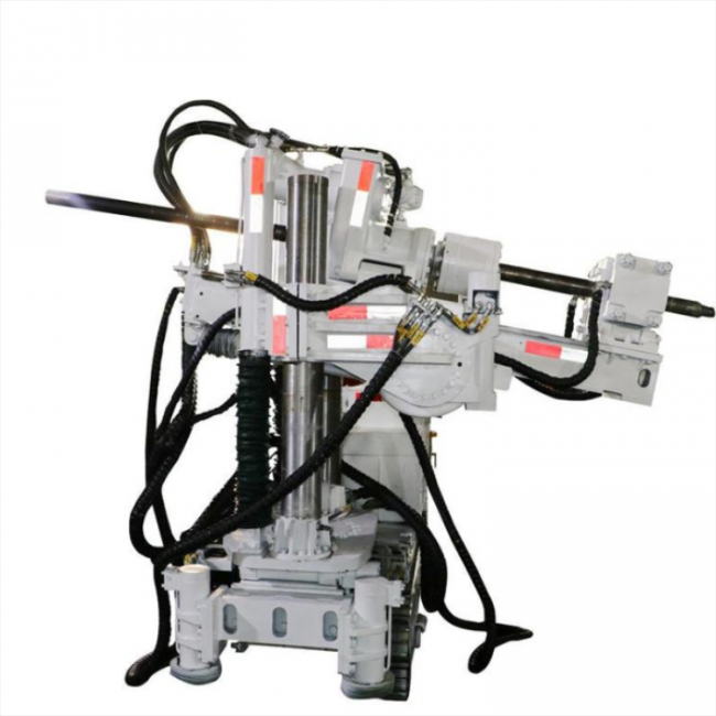采用立柱垂直支撐頂板方式進(jìn)行穩(wěn)鉆,且隨旋轉(zhuǎn)大盤(pán)同時(shí)旋轉(zhuǎn),實(shí)現(xiàn)煤礦井下復(fù)雜環(huán)境中快速支鉆、穩(wěn)鉆。主機(jī)導(dǎo)軌帶有隨動(dòng)角度儀,可簡(jiǎn)單準(zhǔn)確的定位施鉆仰俯角。