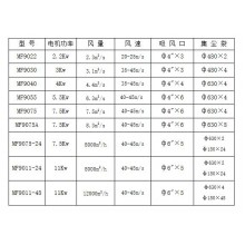 MF9030 | 3Kw | 3.1m3/s | 35-45m/s | ф4"×3 | ф480×4 |
