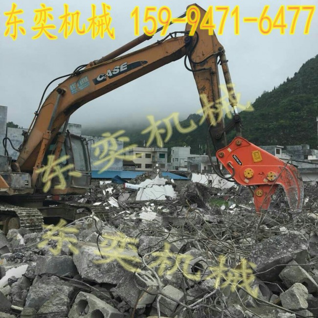 力道強(qiáng)勁=超高效率1、工作效率是破碎錘的二至三倍。 2、粉碎鉗可以出色的完成一系列作業(yè):即將鋼筋從混凝土塊中分離出來,折彎并裝載到卡車上,從而明顯的提高了工作效率。 3、作業(yè)完全機(jī)械化,安全又省時(shí)。 大開大闔=提高效率1、咬合密實(shí)間隙小,操作靈活。 2、大開口設(shè)計(jì),工作輕松、方便。 3、裝有鋼筋切斷器,粉碎鉗可以同時(shí)進(jìn)行兩項(xiàng)作業(yè),粉碎混凝土并切斷暴露的鋼筋,使破碎作業(yè)效率更高。 堅(jiān)固耐用=節(jié)約成本1、采用瑞典高硬度輕質(zhì)鋼材,堅(jiān)實(shí)無比! 2、充分了解中國市場(chǎng)使用習(xí)性,針對(duì)磨耗部件及結(jié)構(gòu)件重點(diǎn)強(qiáng)化,壽命加倍! 3、顎齒制成了特殊形狀用以牢固的固定混凝土塊,楔入并粉碎,以便進(jìn)行快速軋碎。顎齒非常堅(jiān)固,具有高耐磨性。 輕便快捷=創(chuàng)造效益1、拆裝容易,油路設(shè)計(jì),不僅油缸速度加倍,并且可與破碎器通用,一機(jī)多任務(wù)。 2、低噪音無振動(dòng),滿足環(huán)保要求,適合城市與高新園區(qū)的拆除工程。 3、液壓油缸配有護(hù)蓋,用以阻攔混凝土塊和鋼筋的飛濺碎屑。